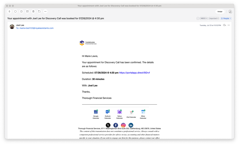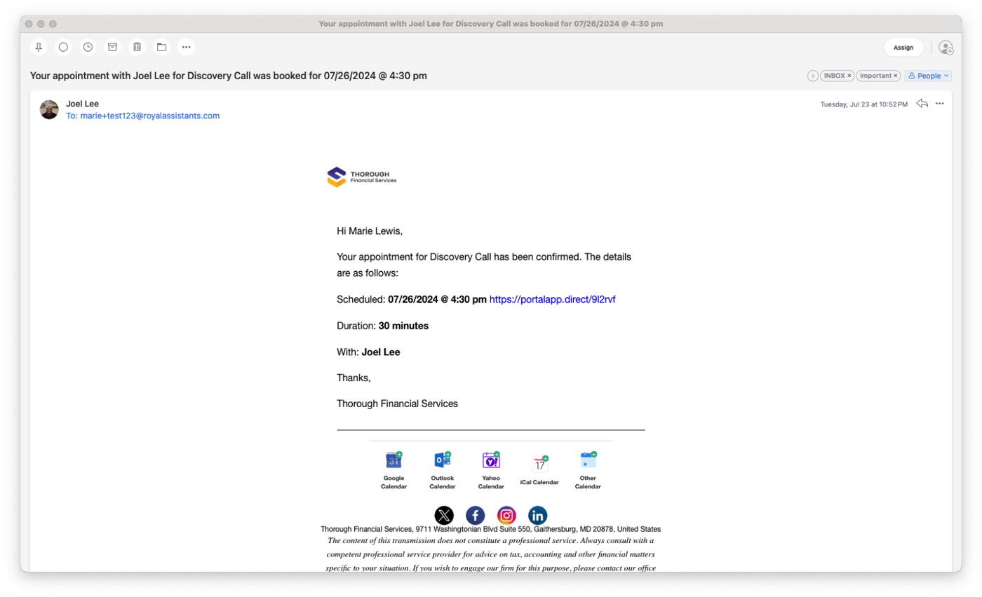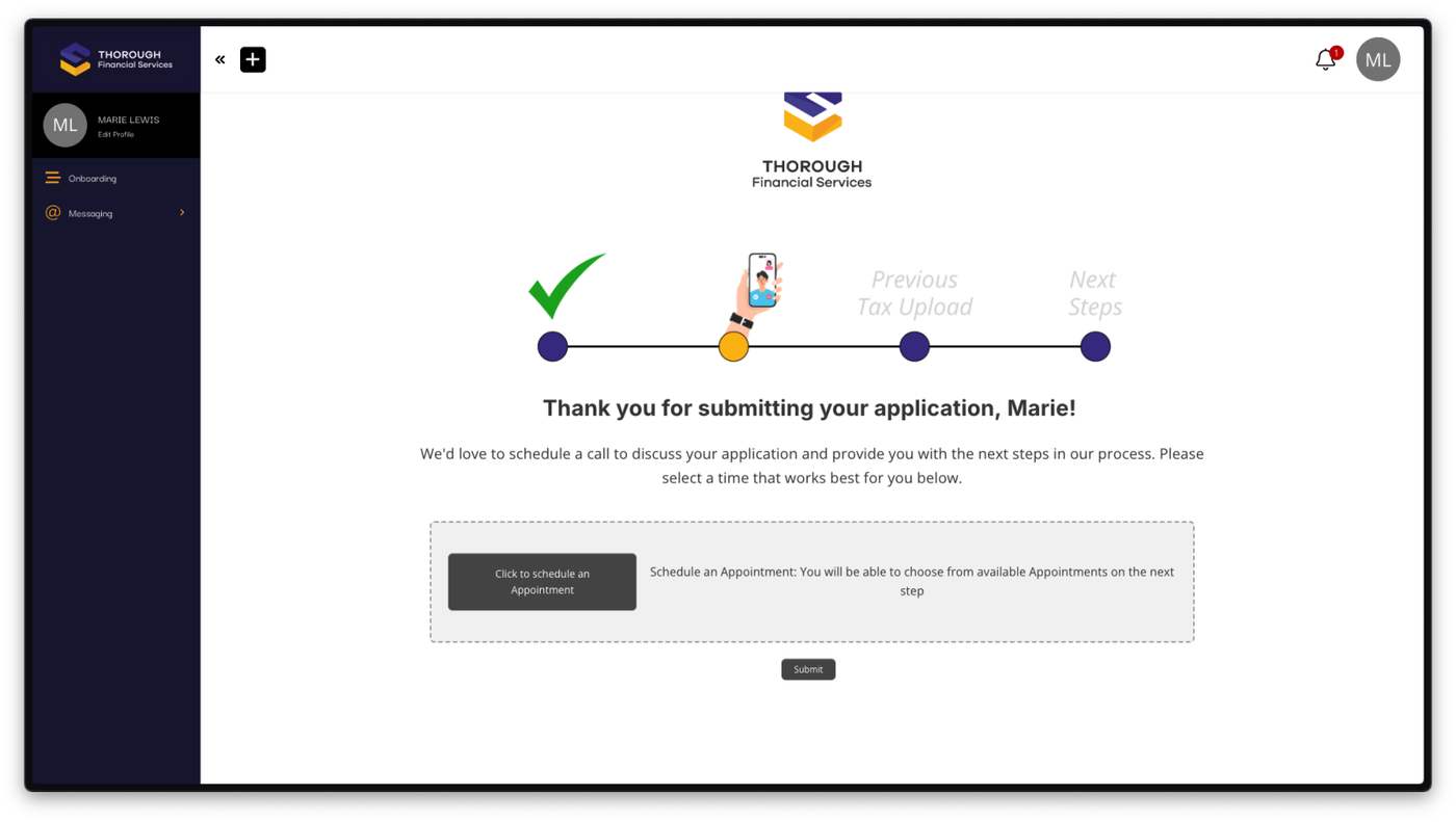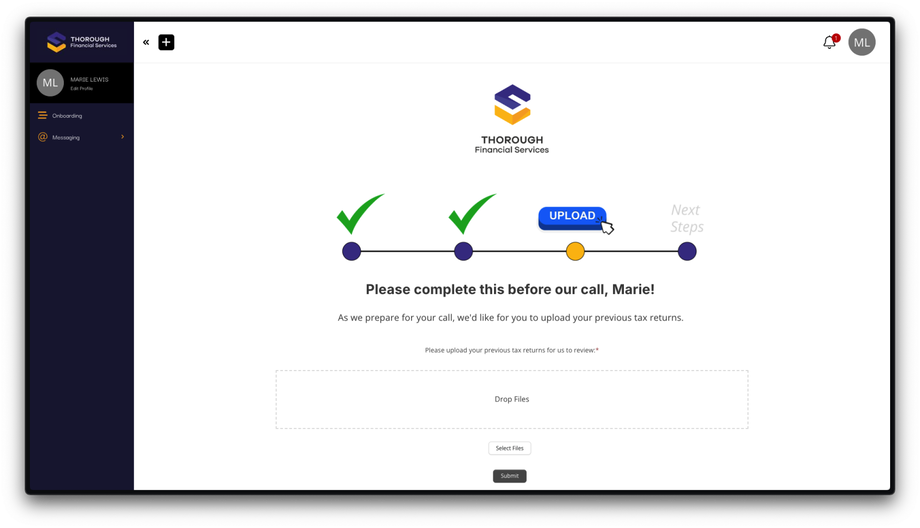 - After scheduling, the client is prompted to upload necessary documents (e.g., tax documents).