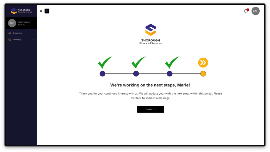 - The client is taken to a pending page awaiting further instructions or a proposal.