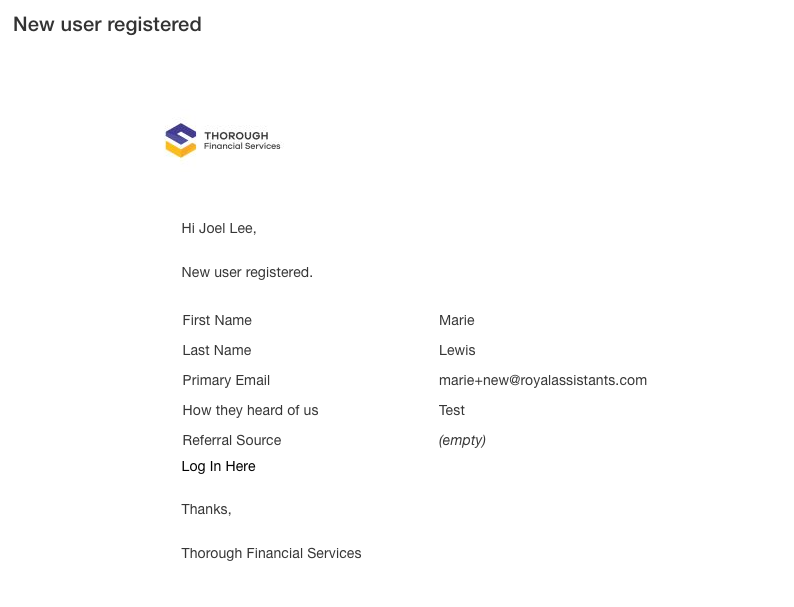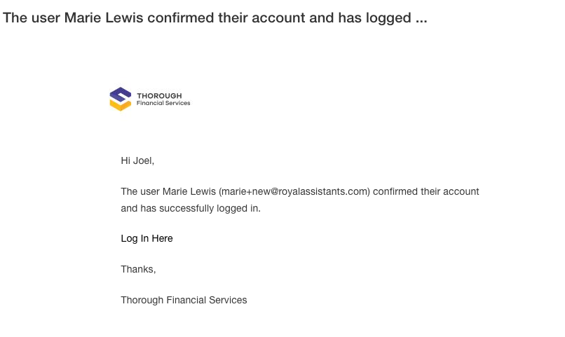 - Upon submission, they see a confirmation screen and receive a welcome email.